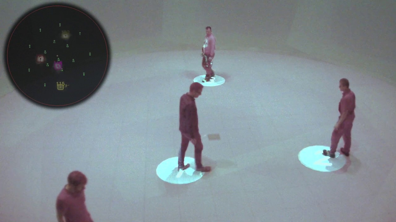 For this purpose, the person tracking designed at Fraunhofer IOSB was adapted and further developed in this project. Due to the modular inventory architecture, the system could be quickly set up and adapted to the new conditions. The purely camera-based system is able to detect an unlimited number of people and clusters of people in the room and localise their position on the floor space across all camera views. For the use case, the cameras were mounted on the ceiling with a vertical view downwards and thus capture the entire floor area in their entirety.
