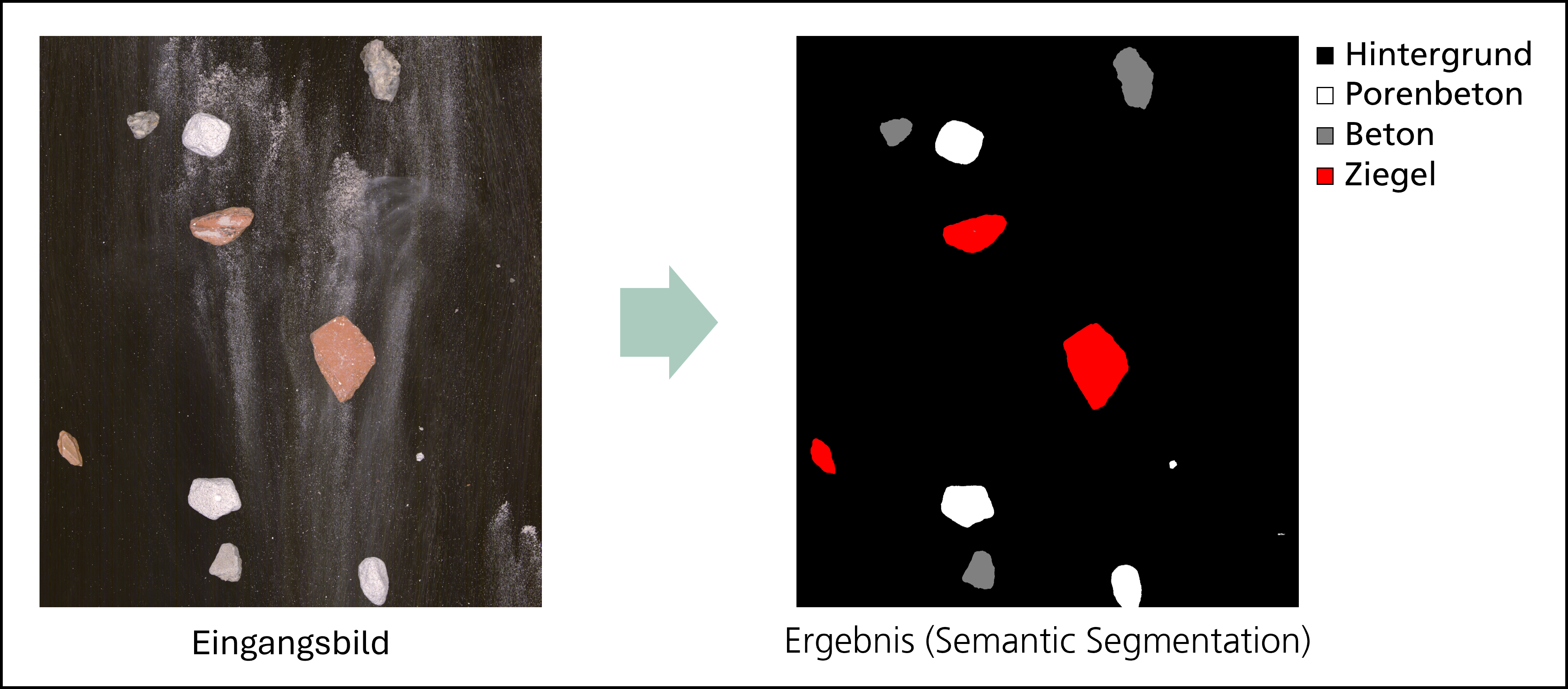 Traditionally, sensor-based sorting techniques have been based on color and shape analysis or simple statistical models. Deep learning-based CNNs are revolutionizing this field and offer significant improvements in object classification and recognition. Many studies on CNNs have not yet been implemented in real sorting systems. Our research breaks new ground by integrating a complete sorting pipeline that incorporates CNN technology into practical applications. We perform semantic segmentation of camera images, the results of which are directly transferred to pneumatic valves for sorting out recognized objects. The sorting system is designed for real-time operation. A response time of less than 30 ms is achieved even with high occupancy densities and belt speeds of over 3 m/s.